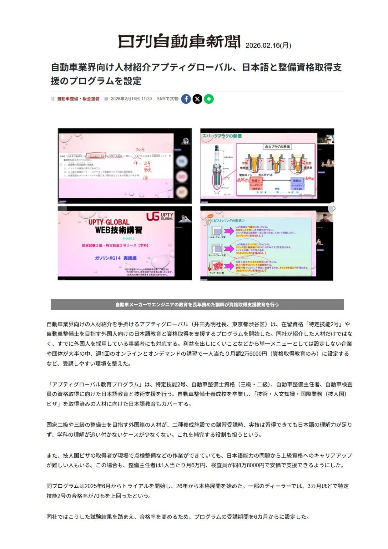自動車業界向け人材紹介アプティグローバル、日本語と整備資格取得支援のプログラムを設定https://www.netdenjd.com/archives/642880